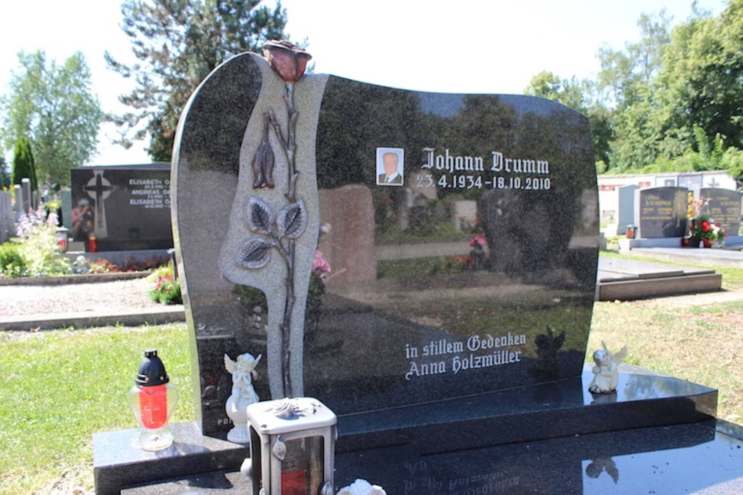 Doppelgrab Drumm Details Name: Drumm Standort: Wels Grabstein: Diese in unserer Werkstatt handgearbeitete Rose ist für die Ewigkeit gemacht.