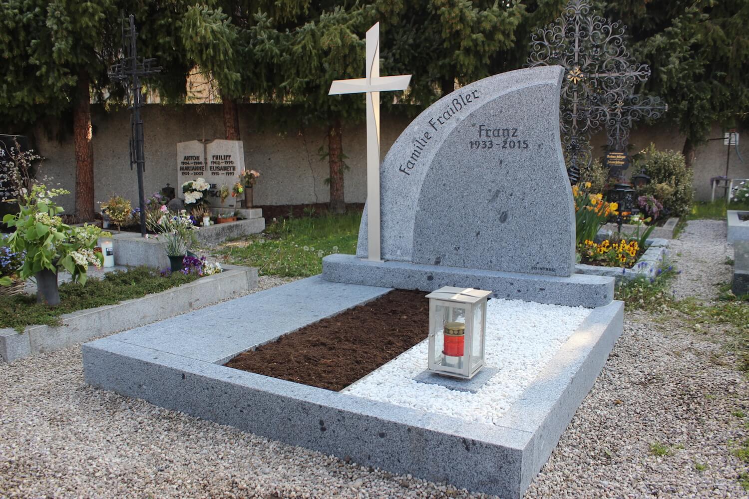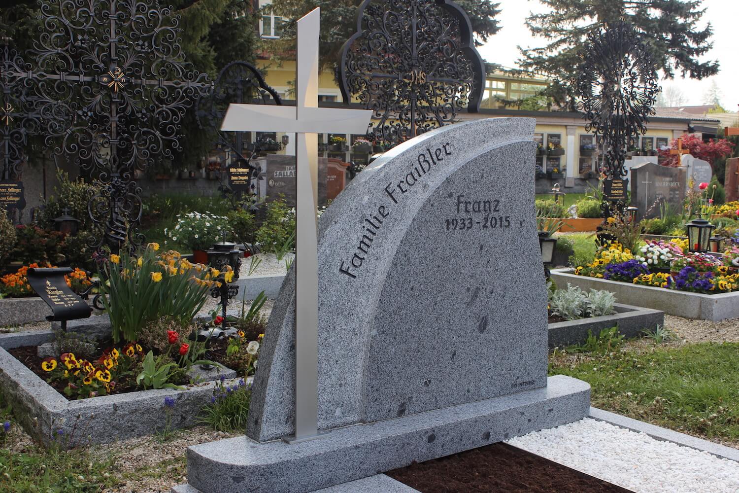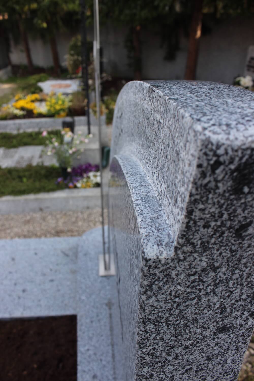 Grabstein: Der zeitlose Schärdinger Granit, ein heimisches Natursteinprodukt, eignet sich perfekt für die Grabmalgestaltung. In Kombination mit Edelstahl und unterschiedlichen Oberflächenbearbeitungen des Natursteins ergibt sich ein stimmiges Gesamtbild. Die traditionelle und handgearbeitete Gravur fügt sich perfekt ein.