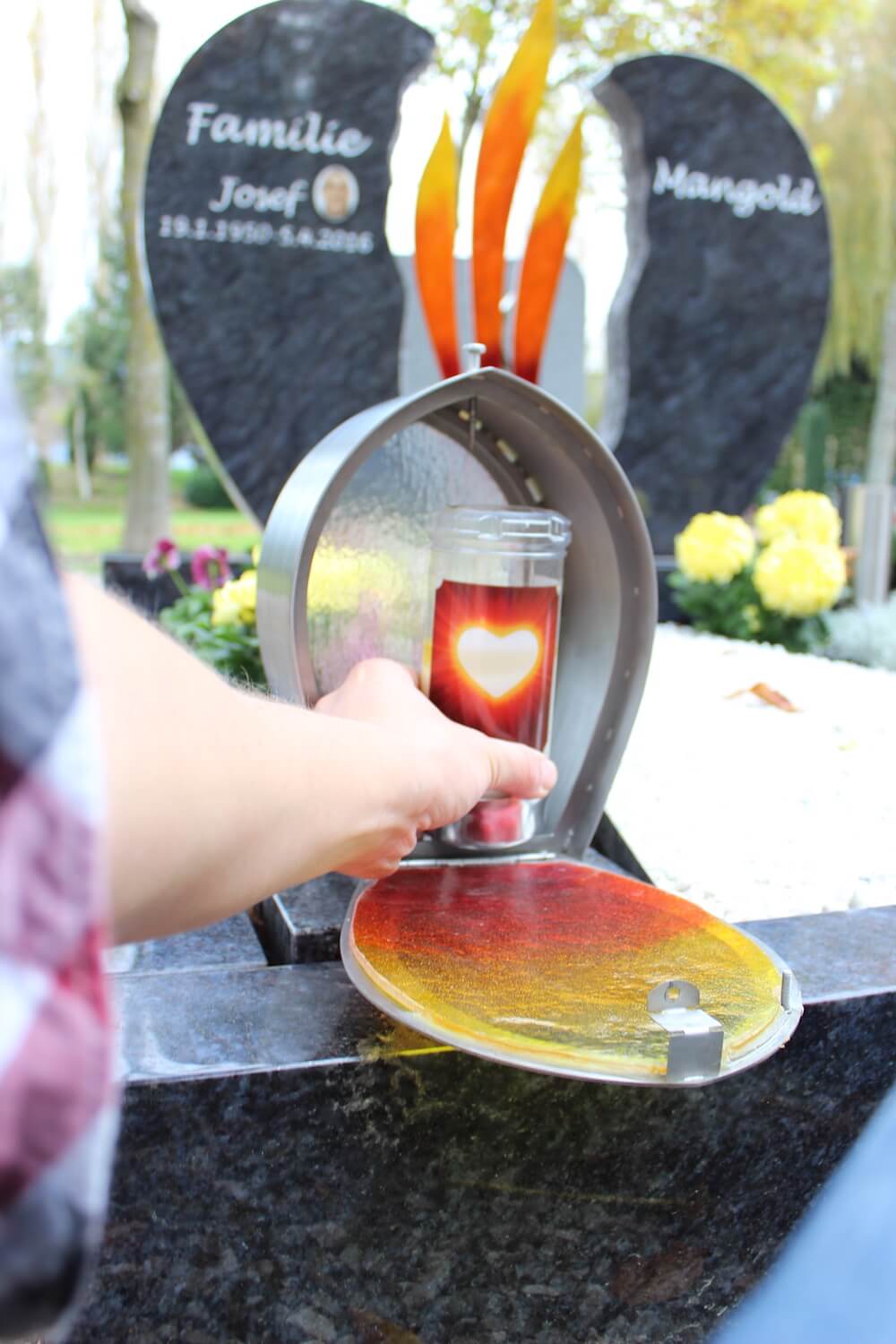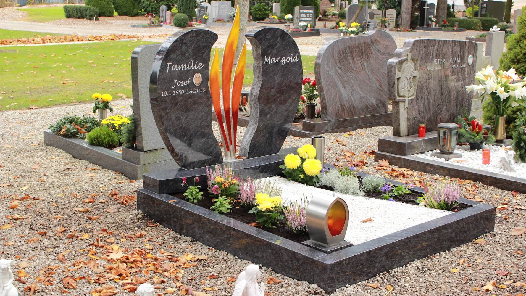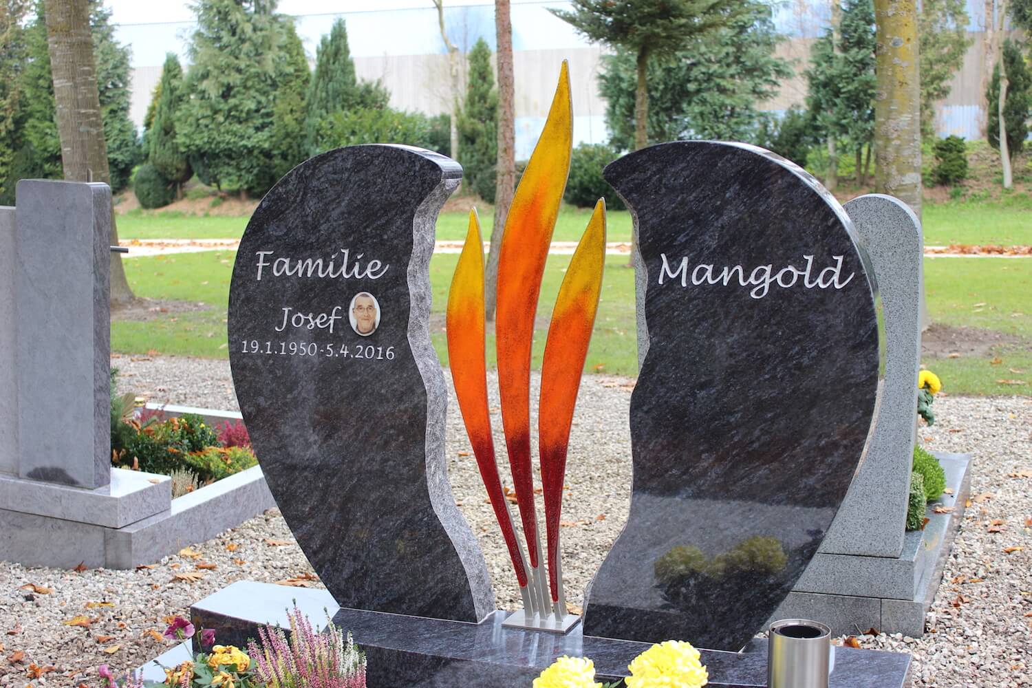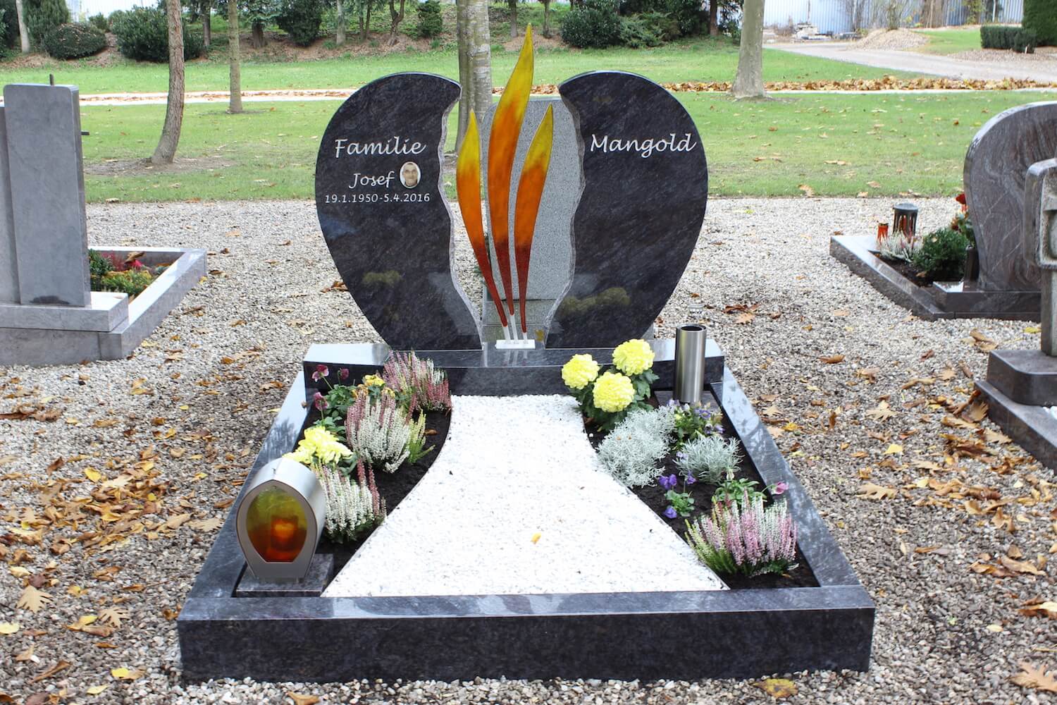 Doppelgrab Mangold Details Name: Mangold Standort: Ried im Innkreis Grabstein: Das Herz als Symbol der Liebe, gebrochen durch den Schmerzhaften Verlust eines geliebten Menschen. Die drei roten Flammen als Symbol der Hoffnung, Erleuchtung und Tröstung der Hinterbliebenen.