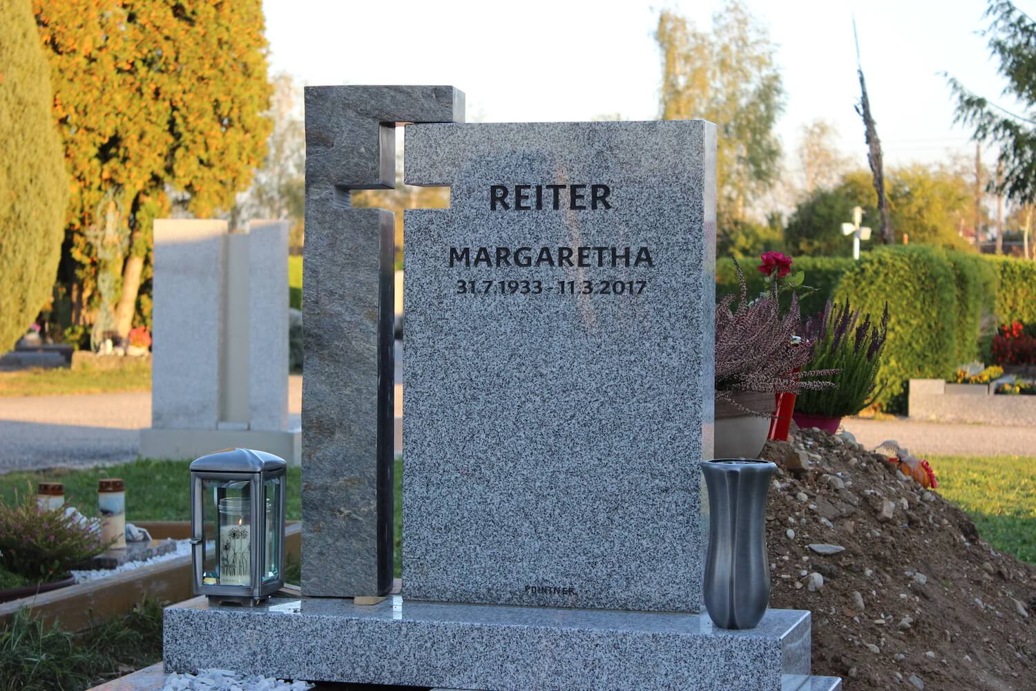 Grabstein: Das lateinische Kreuz ist das bekannteste christliche Kreuz in der westlichen Welt und besteht aus einem langen Stamm und einem kurzen Querbalken. Es bezieht sich auf die im Neuen Testament dargestellte Kreuzigungsszene. Der Querbalken erinnert an die ausgebreiteten Arme Jesu bei seiner Kreuzigung. Weil Jesus das Kreuz, an dem er sterben sollte, selbst zum Ort der Hinrichtung trug, wird es auch als Passionskreuz bezeichnet.