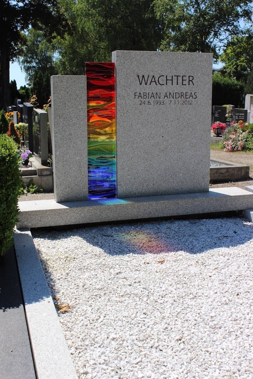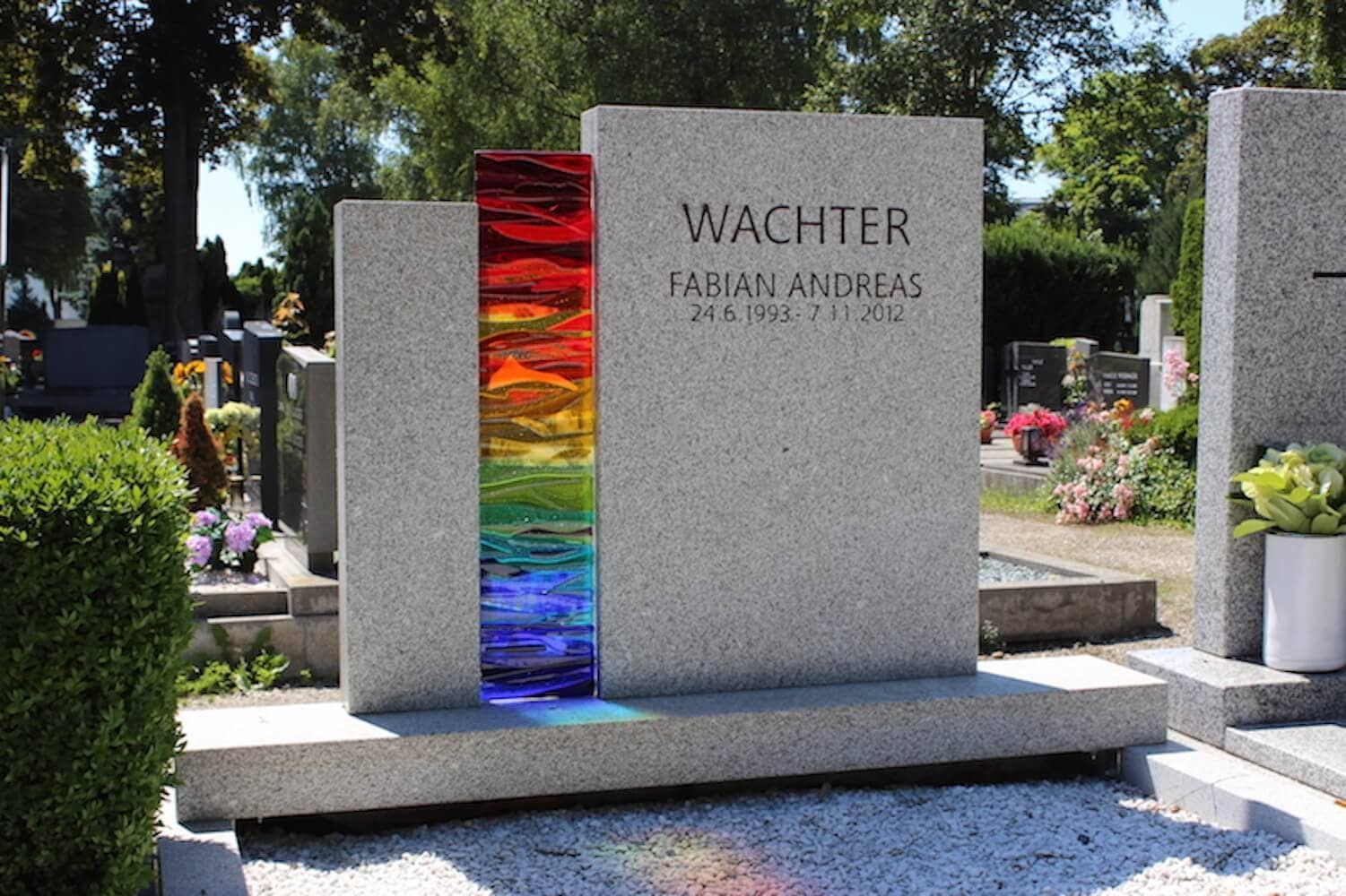 Doppelgrab Wachter Details Name: Wachter Standort: Wels Grabstein: Durch den sehr hellen und fein strukturierten Granit aus Bayern, rückt das mit viel Liebe hergestellte Schmelzglas in den Vordergrund.