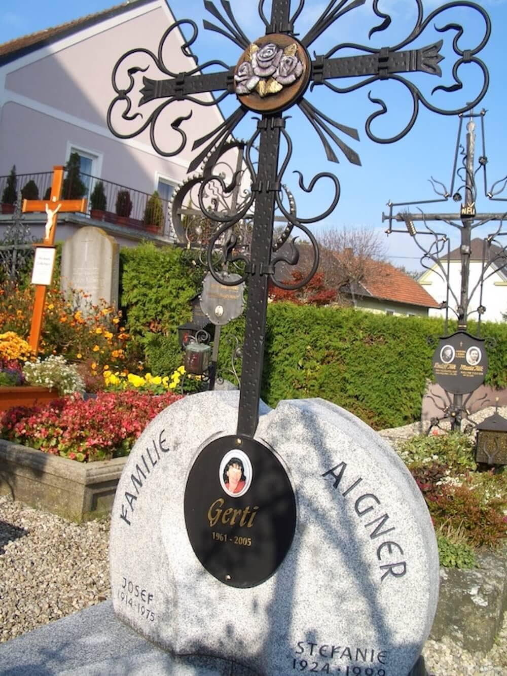 Einzelgrab Aigner Details Name: Aigner Standort: St. Georgen bei Grieskirchen Grabstein: Ein bestehendes Schmiedeeisenkreuz in eine neue Gestaltung zu integrieren erfordert Erfahrung, Gespür und das nötige Know-how, um die Aufgabe auch technisch richtig lösen zu können.