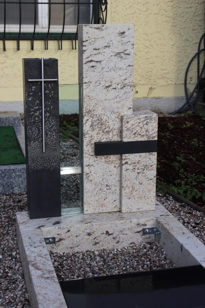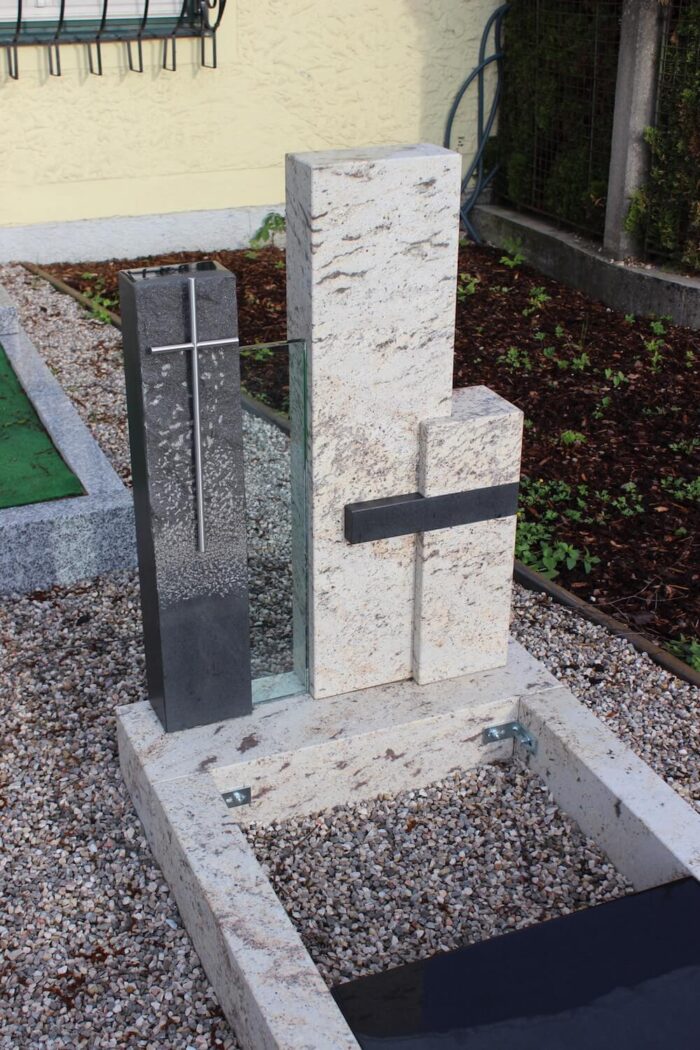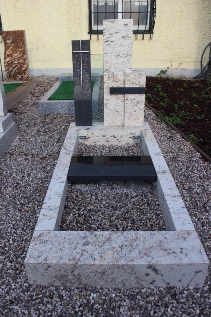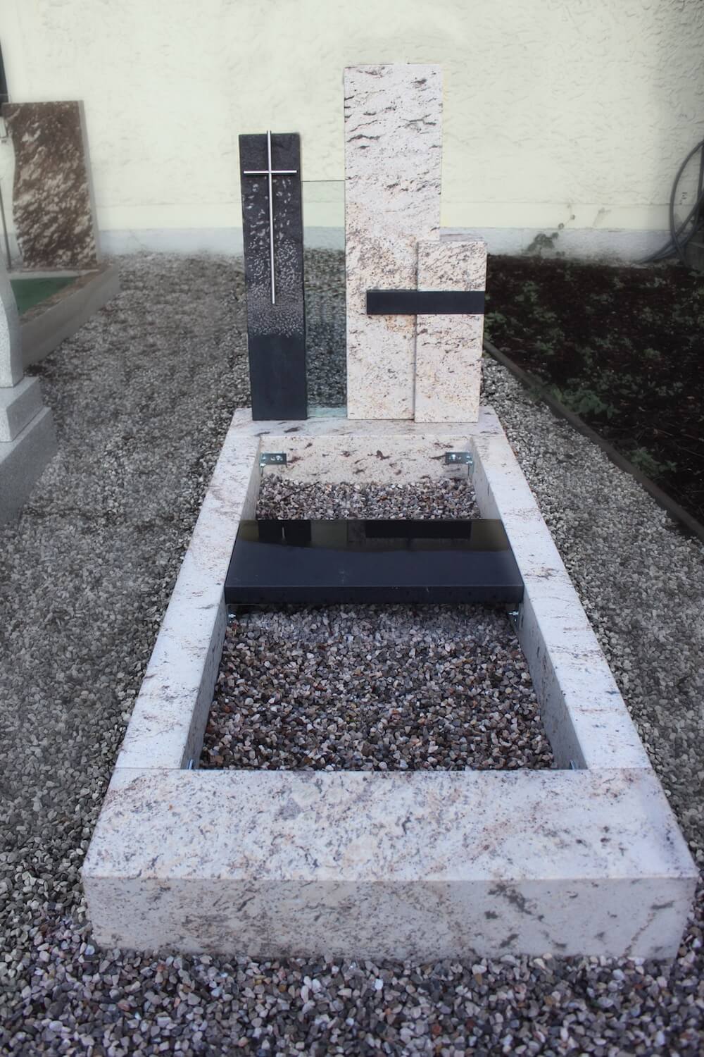 Grabstein: Shivakashi Granit (Migmatit) ist ein gelblich-graues Hartgestein mit teilweise rötlichen Wolken. Gewonnen wird dieses Material auf einer indischen Halbinsel in der Nähe der Insel Sri-Lanka. Höhe und Breite können individuell angepasst werden.