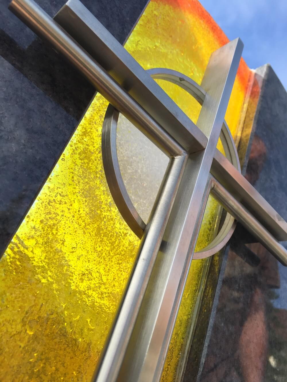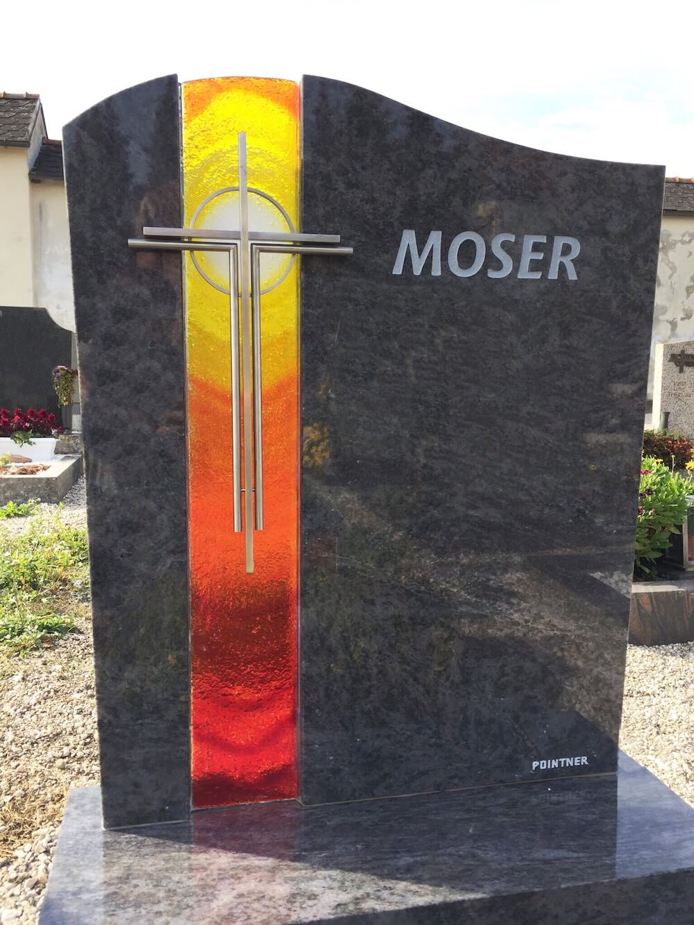 Einzelgrab Moser Details Name: Moser Standort: Grieskirchen Grabstein: Das nach eigenem Entwurf gefertigte Kreuz schwebt vor und zwischen den Welten. Es ist Symbol und Verbindung gleichermaßen.