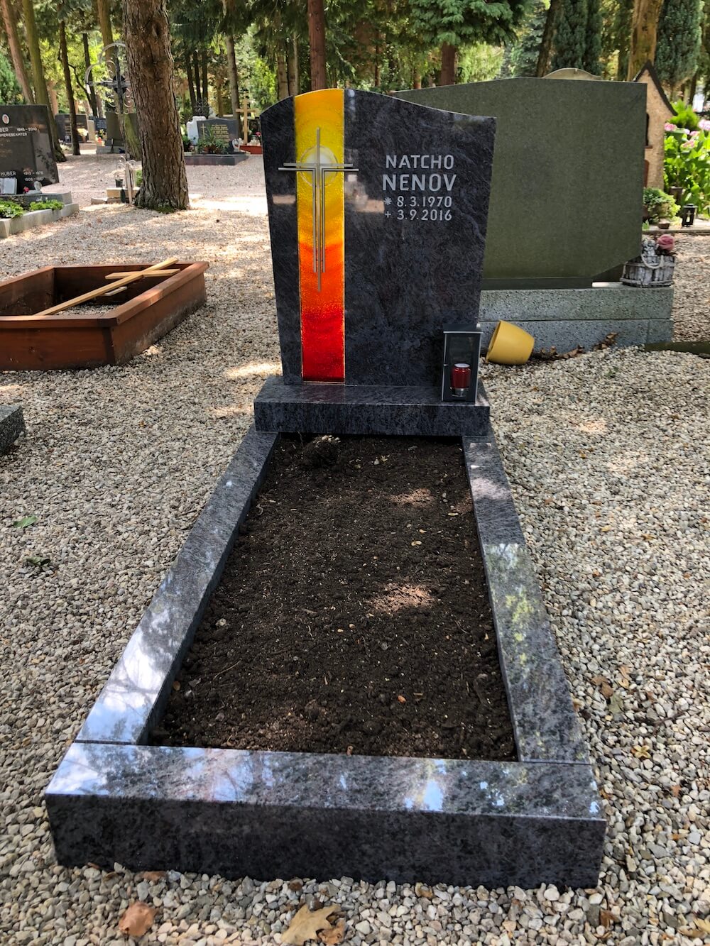 Einzelgrab Nenov Details Name: Nenov Standort: Ried im Innkreis Grabstein: Das nach eigenem Entwurf gefertigte Kreuz schwebt vor und zwischen den Welten. Es ist Symbol und Verbindung gleichermaßen.