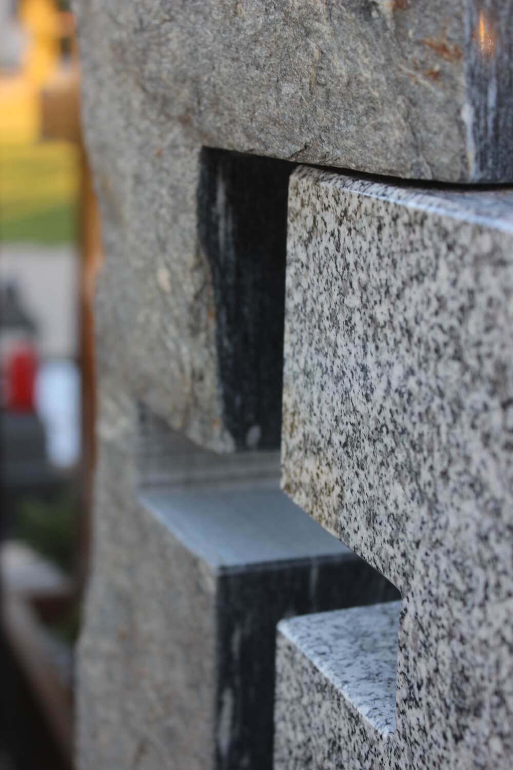 Einzelgrab Reiter Details Name: Reiter Standort: Gunskirchen Grabstein: Durch das Formen und Gestalten von Naturstein können Symboliken entstehen, auch ohne ein anderes Material verwenden zu müssen.