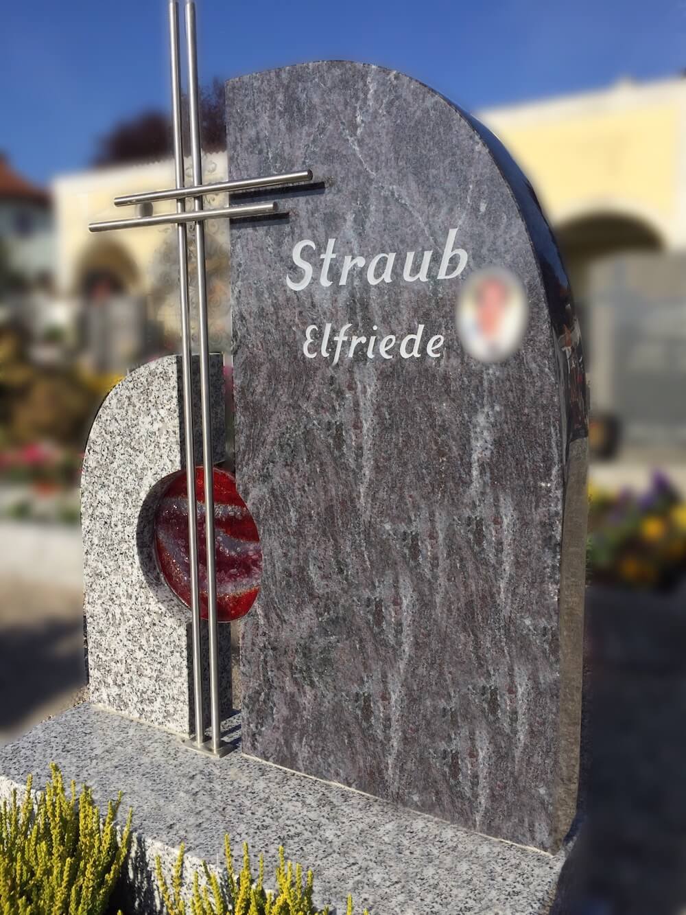 Einzelgrab Straub Details Name: Straub Standort: St. Marienkirchen an der Polsenz Grabstein: Aus zwei verschiedenen Natursteinmaterielien und unserem kreativen Denken können wir auch einfache Formen zu etwas Besonderem machen.