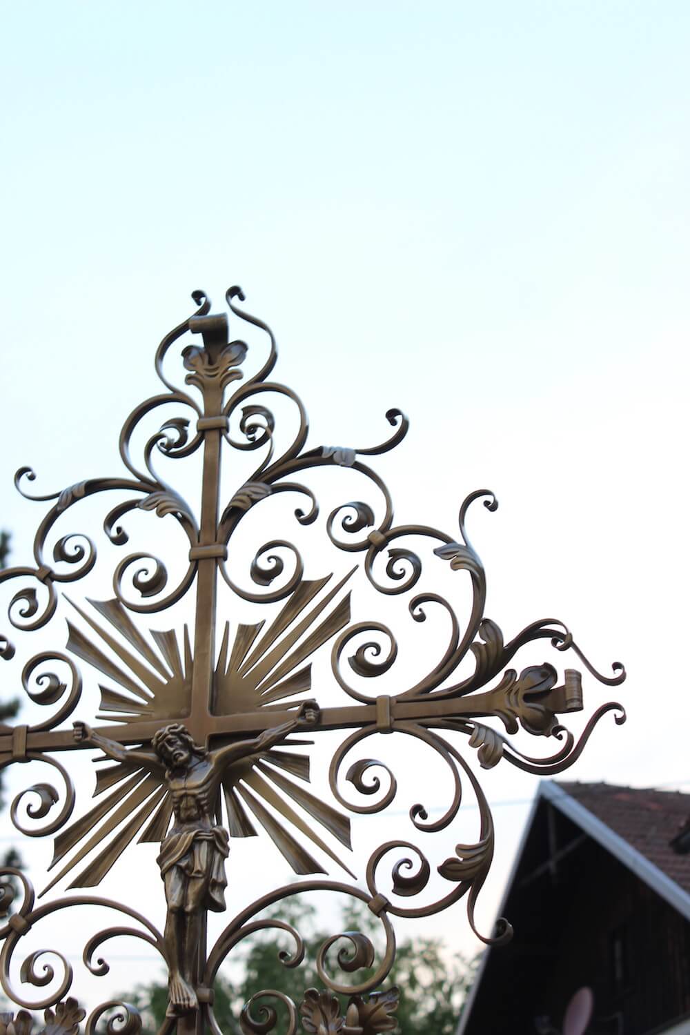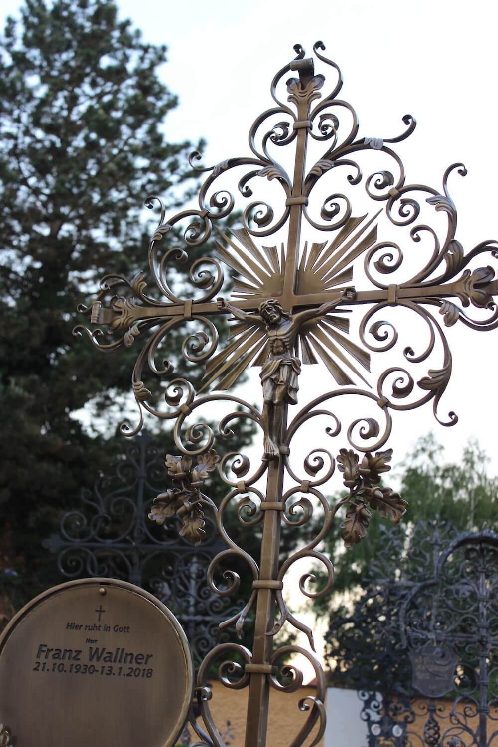 Grabstein: Das Hauptaugenmerk lag bei dieser Gestaltung auf dem Kreuz. Der Verstorbene war leidenschaftlicher Jäger. Das sollte auch beim neu angefertigten Schmiedeeisenkreuz zum Ausdruck kommen. Durch jahrelange Erfahrung und verlässliche Partner konnten wir das Kreuz maßgeschneidert fertigen lassen.